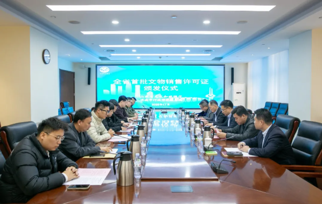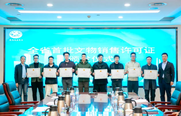 11月18日,山东省文化和旅游厅、济南市行政审批服务局召开支持文物经营企业发展调研座谈会,为参会的文物经营企业颁发全省首批《文物销售许可证》。山东省文化和旅游厅行政许可处处长邢亚光,济南市行政审批服务局党组成员、副局长张鲁宁,以及文物经营企业代表等出席会议。