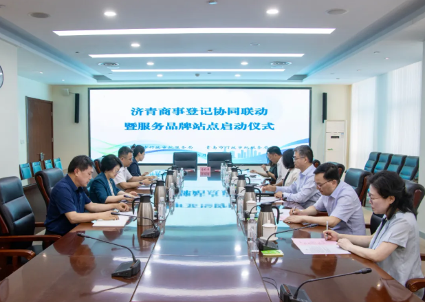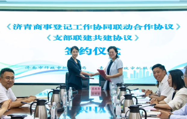 5月27日,济南市行政审批服务局、青岛市行政审批服务局联合举办“济青商事登记服务协同联动暨服务品牌站点成立活动”,建立商事登记工作协同联动合作机制,成立“‘佳佳帮您办’商事登记服务专班青岛工作站”和“全国‘人民满意的公务员’张大为工作室济南工作站”,发布并解读《济青双城商事登记审查标准》,为两市商事登记工作深度融合、区域经济高质量发展注入新的活力。山东省市场监督管理局登记注册处处长高青松出席活动并讲话,济南市政协副主席、市行政审批服务局局长刘霞,青岛市行政审批服务局党组书记、局长赵发海出席活动并致辞。